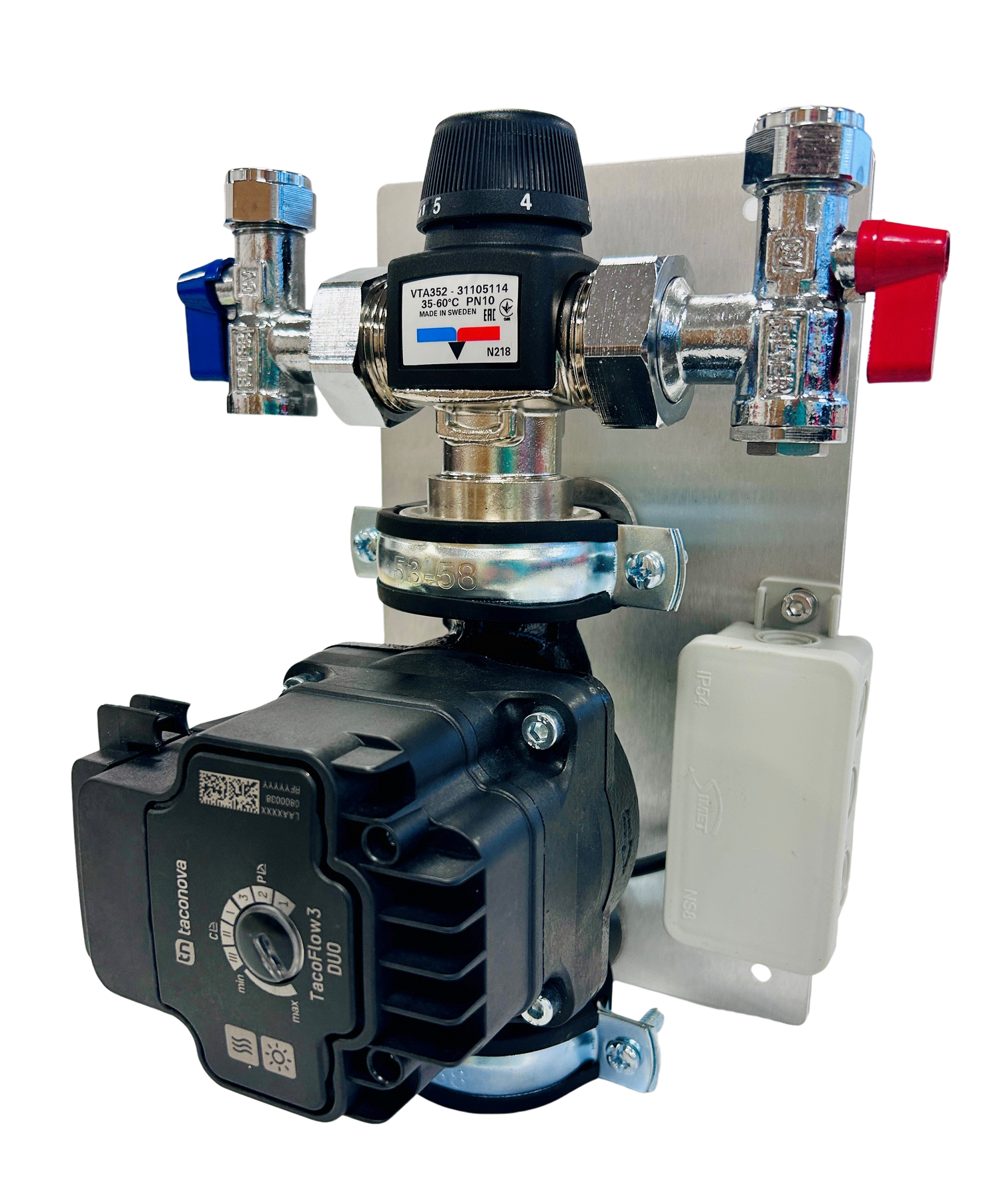 Taconova’s trusted pump technology with precise temperature control, this single circuit pump and mixing valve unit offers an efficient, reliable, and user-friendly solution for smaller underfloor heating zones, ensuring smooth operation and long-term performance.