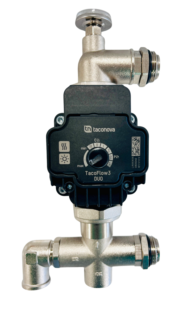 The Taconova Manifold Heat Pump Pack is a high-quality, pre-assembled pump unit specifically designed for seamless integration with underfloor heating manifold systems. It is purpose-built to work with low-temperature heat sources, such as heat pumps, eliminating the need for a mixing valve. This makes it an ideal solution for modern underfloor heating installations driven by energy-efficient heat pump systems. Designed to fit onto manifolds with bars spaced at 210mm centres.