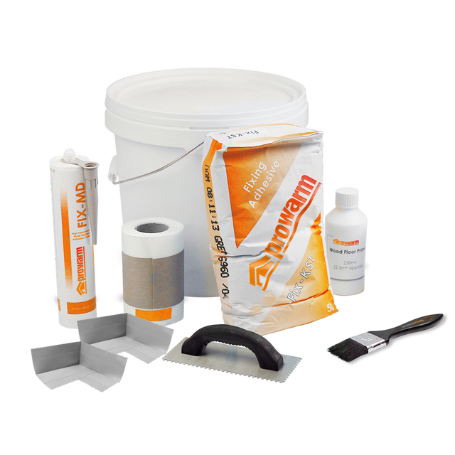 The ProWarm Infinity Tray Install & Drainage Kit includes the following items needed for a Infinity wet room tray installation:
